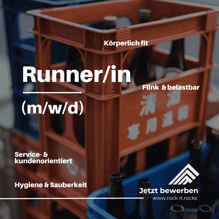 Du bist gerne in Bewegung & sitzt nicht gern lange still? Perfekt – als Runner sorgst Du im Hintergrund dafür, dass bei Events alles rund läuft. Du bringst Material von A nach B, unterstützt verschiedene Teams & springst dort ein, wo gerade Hilfe gebraucht wird. Du bist zuverlässig, körperlich fit & hast kein Problem damit, auch mal ein paar Kilometer über ein Eventgelände zu laufen? Wenn es schnell gehen muss, bleibst Du organisiert & behältst den Überblick. Kurz gesagt: Du bist da, wo gerade angepackt werden muss. Noch keine Profi-Erfahrung? Kein Problem – mit unseren Schulungen machen wir Dich fit für Deinen ersten Einsatz!